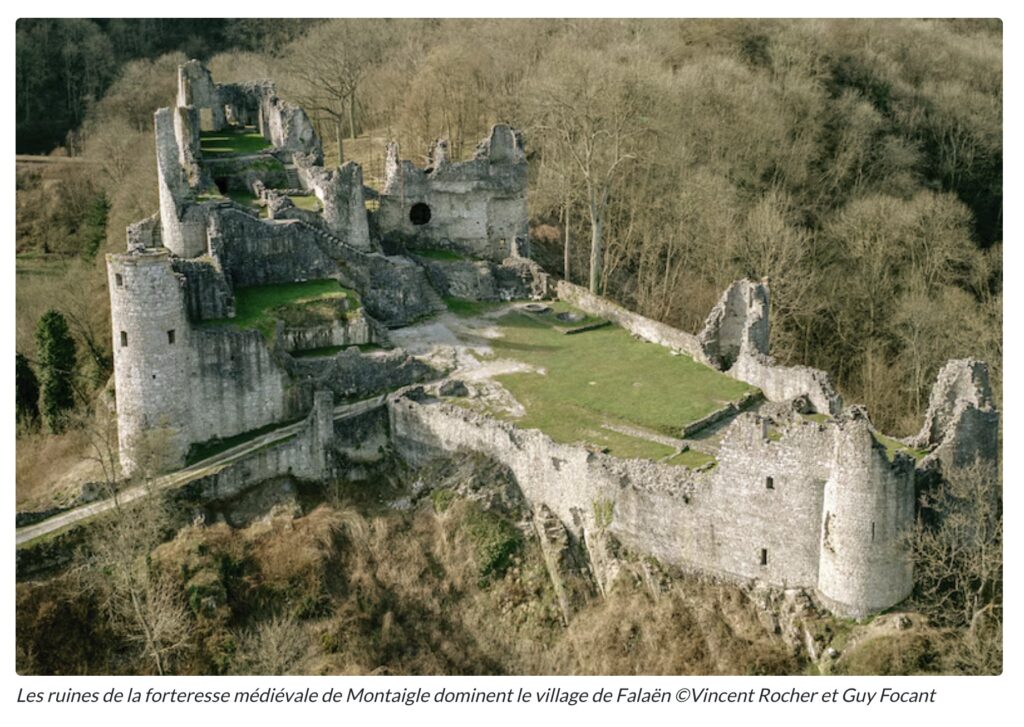 Bruno Dinant a implanté son intrigue en province de Namur. « Je suis passé pas mal de fois devant le château de Montaigle, dans la vallée de la Molignée. Il n’y a plus que des ruines là-bas. La seule réelle tour est effondrée. Je me suis dit que j’allais la remettre droite et la faire fréquenter par un jeune seigneur qui y va encore avec quelques jeunes donzelles. C’est ce lieu qui m’a donné l’inspiration pour cette histoire. » Le lecteur voyage entre la vallée de la Molignée, Falaën et d’autres villages du coin, aussi entre Anhée et Namur. « Tous ces décors sont bien décrits. Les gens qui sont déjà passés par ces coins vont les reconnaître ».